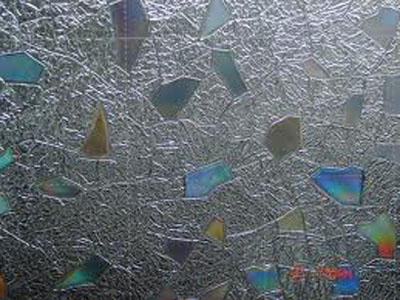 夹层在两层玻璃中间,形成表面透明。但在光线的折射线,各种不同角度上看可呈现不同的颜色。图案和视觉效果的特种玻璃,镭射全息玻璃的问世。为装潢材料、家具业的设计师们提供全新的选择。镭射全息膜分为个性化设计之图案/LOGO/文字版及普通无图版两种。