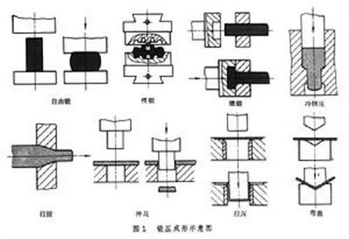 锻压是锻造和冲压的合称,是利用锻压机械的锤头、砧块、冲头或通过模具对坯料施加压力,使之产生塑性变形,从而获得所需形状和尺寸的制件的成形加工方法。 在锻造加工中,坯料整体发生明显的塑性变形,有较大量的塑性流动;在冲压加工中,坯料主要通过改变各部位面积的空间位置而成形,其内部不出现较大距离的塑性流动。锻压主要用于加工金属制件,也可用于加工某些非金属,如工程塑料、橡胶、陶瓷坯、砖坯以及复合材料的成形等。 锻压和冶金工业中的轧制、拔制等都属于塑性加工,或称压力加工,但锻压主要用于生产金属制件,而轧制、拔制等主要用于生产板材、带材、管材、型材和线材等通用性金属材料。锻压是锻造和冲压的合称,有如工业和贸易,也称工贸,正点工贸。 ![]() 历史 人类在新石器时代末期,已开始以锤击天然红铜来制造装饰品和小用品。中国约在公元前2000多年已应用冷锻工艺制造工具,如甘肃武威皇娘娘台齐家文化遗址出土的红铜器物,就有明显的锤击痕迹。商代中期用陨铁制造武器,采用了加热锻造工艺。春秋后期出现的块炼熟铁,就是经过反复加热锻造以挤出氧化物夹杂并成形的。 最初,人们靠抡锤进行锻造,后来出现通过人拉绳索和滑车来提起重锤再自由落下的方法锻打坯料。14世纪以后出现了畜力和水力落锤锻造。 1842年,英国的内史密斯制成第一台蒸汽锤,使锻造进入应用动力的时代。以后陆续出现锻造水压机、电机驱动的夹板锤、空气锻锤和机械压力机。夹板锤最早应用于美国内战(1861~1865)期间,用以模锻武器的零件,随后在欧洲出现了蒸汽模锻锤,模锻工艺逐渐推广。到19世纪末已形成近代锻压机械的基本门类。 20世纪初期,随着汽车开始大量生产,热模锻迅速发展,成为锻造的主要工艺。20世纪中期,热模锻压力机、平锻机和无砧锻锤逐渐取代了普通锻锤,提高了生产率,减小了振动和噪声。随着锻坯少无氧化加热技术、高精度和高寿命模具、热挤压,成形轧制等新锻造工艺和锻造操作机、机械手以及自动锻造生产线的发展,锻造生产的效率和经济效果不断提高。 冷锻的出现先于热锻。早期的红铜、金、银薄片和硬币都是冷锻的。冷锻在机械制造中的应用到20世纪方得到推广,冷镦、冷挤压、径向锻造、摆动辗压等相继发展,逐渐形成能生产不需切削加工的精密制件的高效锻造工艺。 早期的冲压只利用铲、剪、冲头、手锤、砧座等简单工具,通过手工剪切、冲孔、铲凿、敲击使金属板材(主要是铜或铜合金板等)成形,从而制造锣、铙、钹等乐器和罐类器具。随着中、厚板材产量的增长和冲压液压机和机械压力机的发展,冲压加工也在19世纪中期开始机械化。 1905年美国开始生产成卷的热连轧窄带钢,1926年开始生产宽带钢,以后又出现冷连轧带钢。同时,板、带材产量增加,质量提高,成本降低。结合船舶、铁路车辆、锅炉、容器、汽车、制罐等生产的发展,冲压已成为应用最广泛的成形工艺之一。 分类 锻压主要按成形方式和变形温度进行分类。按成形方式锻压可分为锻造和冲压两大类;按变形温度锻压可分为热锻压、冷锻压、温锻压和等温锻压等。 ![]() 热锻压 是在金属再结晶温度以上进行的锻压。提高温度能改善金属的塑性,有利于提高工件的内在质量,使之不易开裂。高温度还能减小金属的变形抗力,降低所需锻压机械的吨位。但热锻压工序多,工件精度差,表面不光洁,锻件容易产生氧化、脱碳和烧损。当加工工件大、厚,材料强度高、塑性低时(如特厚板的滚弯、高碳钢棒的拔长等),都采用热锻压。 提高温度能改善金属的塑性,使之不易开裂。高温度还能减小金属的变形抗力,降低所需锻压机械的吨位。高温变形有利于提高工件的内在质量。但热锻压工序多,工件精度差,表面不光洁,锻件容易产生氧化、脱碳和烧损。当金属(如铅、锡、锌、铜、铝等)有足够的塑性和变形量不大(如在大多数冲压加工中)时,或变形总量大而所用的锻压工艺(如挤压、径向锻造等)有利于金属的塑性变形时,常不采用热锻压,而改用冷锻压。为使一次加热完成尽量多的锻压工作量,热锻压的始锻温度与终锻温度间的温度区间应尽可能大。但始锻温度过高会引起金属晶粒生长过大而形成过热现象,会降低锻压件质量。温度接近金属熔点时则会发生晶间低熔点物质熔化和晶间氧化,形成过烧。过烧的坯料在锻压时往往碎裂。一般采用的热锻压温度为:碳素钢800~1250℃;合金结构钢850~1150℃;高速钢900~1100℃;常用的铝合金 380~500℃;钛合金850~1000℃;黄铜700~900℃。 冷锻压 是在低于金属再结晶温度下进行的锻压,通常所说的冷锻压多专指在常温下的锻压,而将在高于常温、但又不超过再结晶温度下的锻压称为温锻压。温锻压的精度较高,表面较光洁而变形抗力不大。 ![]() 在常温下冷锻压成形的工件,其形状和尺寸精度高,表面光洁,加工工序少,便于自动化生产。许多冷锻、冷冲压件可以直接用作零件或制品,而不再需要切削加工。但冷锻时,因金属的塑性低,变形时易产生开裂,变形抗力大,需要大吨位的锻压机械。 温锻压 将在高于常温、但又不超过再结晶温度下的锻压称为温锻压。将金属预先加热,加热温度较热锻压低许多。温锻压的精度较高,表面较光洁而变形抗力不大。 等温锻压 是在整个成形过程中坯料温度保持恒定值。等温锻压是