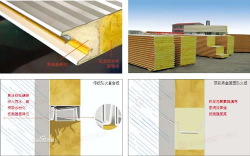 聚氨酯防火板,其面材采用高品质彩色涂层钢板,芯材采用高品质岩棉、玻璃丝棉,高密度硬质发泡聚氨酯为企口填充,经过高压发泡固化,自动密实布棉并由超长精密双履带控制成型复合而成,与传统挂棉围护材料相比,防火、保温效果更佳,性能更持久。