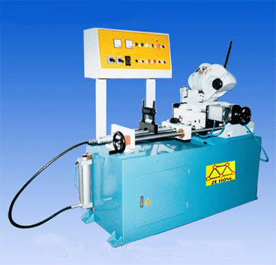锯切可按所用刀具形式分为弓锯切、圆锯切、带锯切和砂轮锯切等。①弓锯切是将锯条张紧在弓形的锯架上,并作直线往复运动,对工件进行切割,一般在弓锯床(见锯床)上利用动力锯切,也可用手工锯切。由于弓锯切在回程时不进行切削,故效率较低。②圆锯切是在圆锯床上由主轴带动圆锯片旋转对工件进行连续切割,效率较高。③带锯切是在带锯床上利用两个轮子把长而薄的环形锯带张紧,并驱动锯带作连续运动对工件进行切割。宽带锯切的效率高,切口窄,有取代弓锯切的趋势;窄带锯切适于切割扁平工件的外部曲线轮廓或成形的通孔。④砂轮锯切是用高速旋转的薄片砂轮切割工件,适于切割难加工金属材料。各种锯切方法的精度都不高,除窄带锯切外,一般用于在备料车间切断各种棒料、管料等型材。